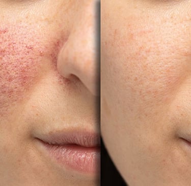 The treatment targets visible blood vessels and rosacea-related redness, improving overall skin clarity and tone.